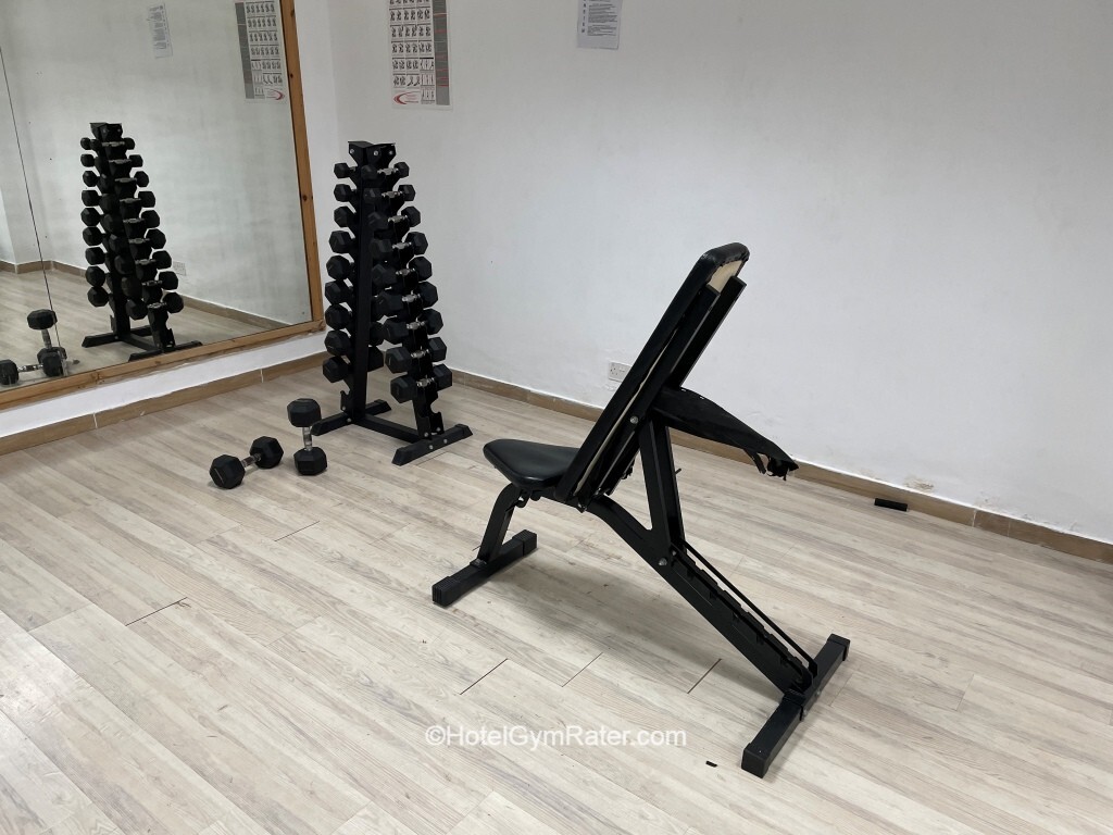 Time of visit: October 2025 Equipment Dumbbells go up to 22 lbs/10 kgs and there’s a very wobbly and worn-out bench to work with. There’s a multi-gym in the corner, but it’s quite worn-out too and the selection of handles is very limited too. Finally, the range of motion is also super limited. ...