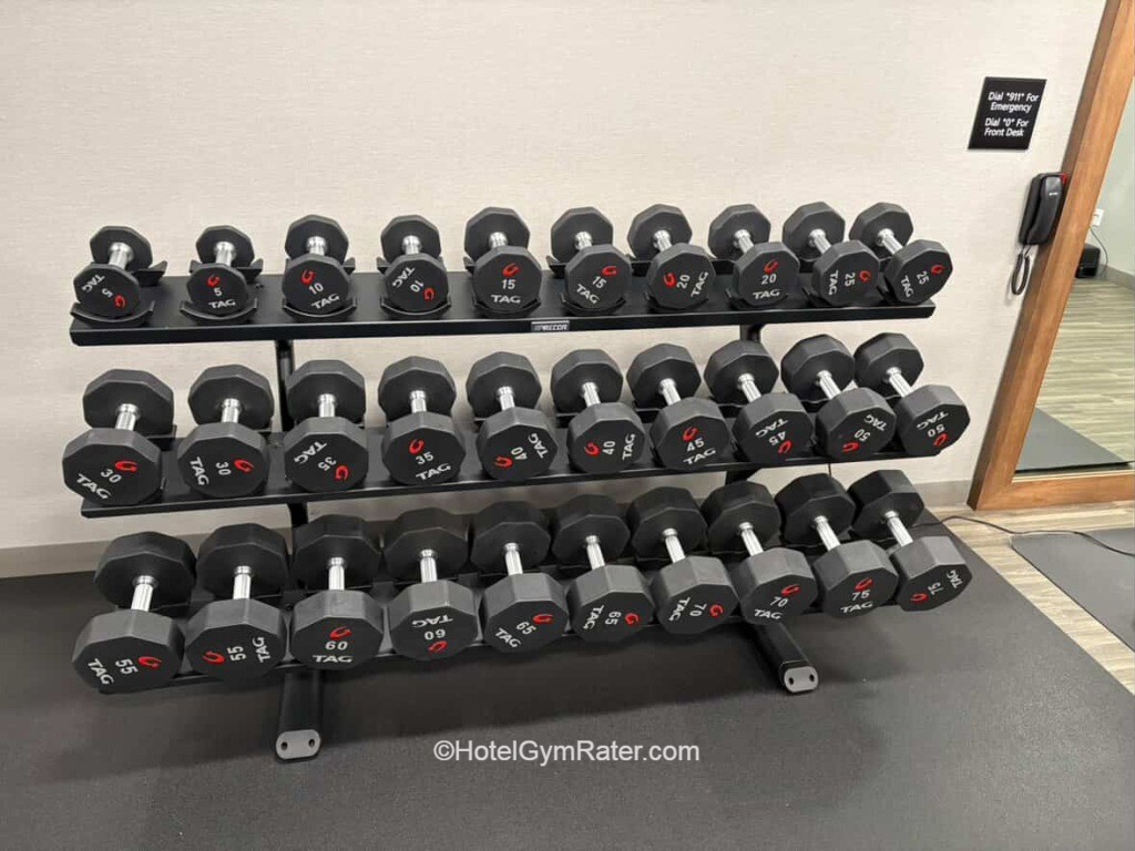 Time of visit: November 2025 Equipment Strength equipment consists of dumbbells up to 75 lbs/34 kgs and there’s an adjustable bench as well. Kettlebells go up to 30 lbs/13 kgs. There’s also a dual cable machine. Cardio machines consist of three treadmills, a cross-trainer and a Peloton bike. O...