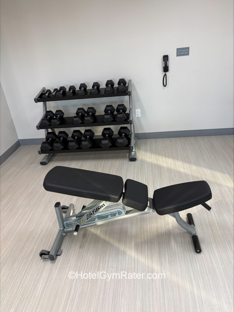 Time of visit: December 2025 Equipment Strength equipment consists of sets of dumbbells up to 50 lbs/22 kgs and there’s an adjustable bench as well. Cardio equipment consists of two treadmills, a cross-trainer and a Peloton bike. Does the hotel gym offer complimentary towels? Yes. Does the hot...