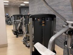 There’s a relatively big cardio area with seven treadmills, six cross-trainers, four stationary bikes and a Peloton bike.