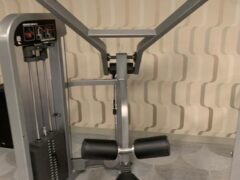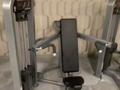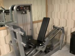 Strength training machines include a chest press, shoulder press, lat pull-down and seated leg press machine.
