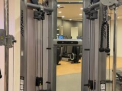 There’s a nice selection of dumbbells (from 5 to 50lbs/2 to 22kgs) and two adjustable benches. There’s also a cable machine with pull-up bars and a machine for leg curls as well as a machine for leg extensions.