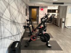 As for cardio equipment, there’re two Peloton bikes, two cross-trainers, a spinning-like bike, two stationary bikes and five treadmills.