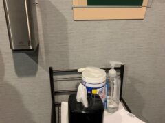 I really appreciated there being a water cooler, hand sanitizer, complementary towels, tissue, and disinfectant wipes available inside the hotel gym.