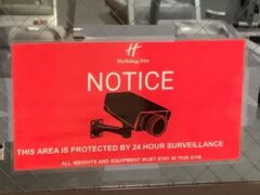 Interesting note: on the door to the hotel gym, there’s a sign stating that the hotel gym is monitored by security cameras.