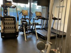 As for cardio equipment, there’s a stationary bike, two cross-trainers and two treadmills.