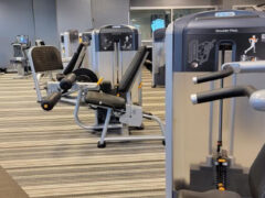 In terms of pin-operated machines, there’s everything you need: leg press, leg extensions and curls, shoulder presses, lat pull-downs, etc.