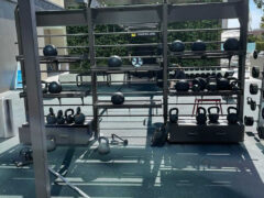 Cardio-wise there’s a stair-master, two cross-trainers, two treadmills, a stationary bike, a rowing machine and two spinning bikes.