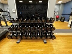 There’s also a solid selection of dumbbells (5 to 75lbs/2 to 34kgs) and a cable machine.