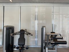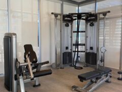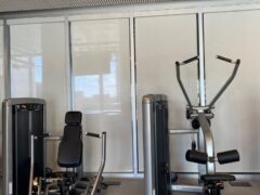 In terms of pin-operated machines, there’s a leg extension machine, a chest press machine, a lat pull-down machine, a leg curls machine and a shoulder press machine. There’s also a cable machine and a fair selection of dumbbells including two adjustable benches.