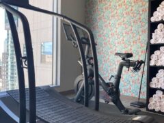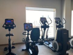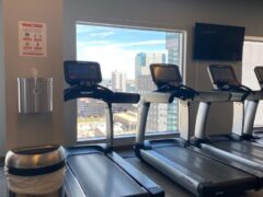 Great size hotel gym with plenty of space. Amazing views of downtown as it’s on the top floor.