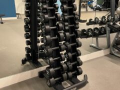 There’s a nice range of kettlebells and with dumbbells up to 85 lbs/38 kgs, most people’s needs are surely covered. There’re four adjustable benches including a decline version.