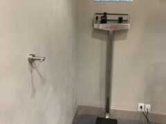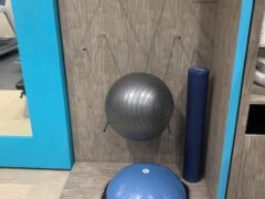 I was happy to see that there was a manual scale as well as seven workout mats for guests to use while working out.