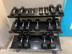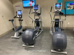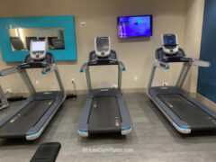 As for cardio equipment, there’re a spinning bike, three treadmills, and two cross-trainers.