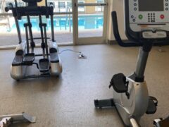 There’re two treadmills, a cross-trainer and a stationary bike.