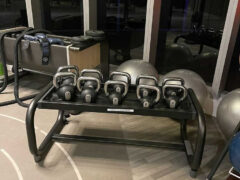 If you’re looking for a weight-based workout, there’re dumbbells and kettlebells – both up to around 44-55 lbs/20-25 kgs – as well a Smith machine, barbell bench press, a few machines, cable towers and different exercise balls.