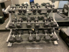 There’re two treadmills and a cross trainer as well as dumbbells (up to 50 lbs/22 kgs) and an adjustable bench – that’s it.