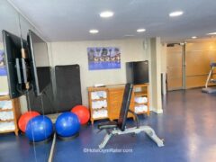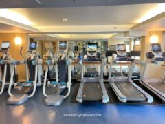 In terms of cardio equipment, there’s a stationary bike, three cross-trainers and three treadmills.