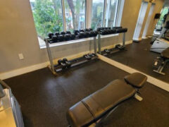 There’s an adjustable bench and some dumbbells as well as a cable machine.