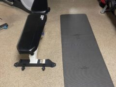Dumbbells go up to 50 lbs/22 kgs and there’s an adjustable bench as well.