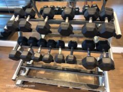 There’re dumbbells up to 44 lbs/20 kgs, kettlebells and an adjustable bench including exercise balls if you’re looking for a weight-based workout.