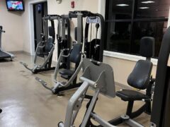 There’re are many different weight-based machines such as leg presses, biceps curls, chest flys, shoulder presses, seated rows, rear delt flys and back extensions.