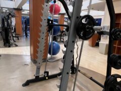 There’s a cable machine, a Smith machine and a tower for dips and chin-ups/pull-ups.