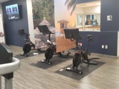 The cardio section consists of stationary bikes, cross-trainers, treadmills and even Peloton bikes!