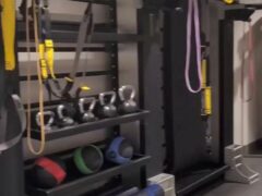 There’s a solid selection of dumbbells and an adjustable bench as well as a handful of kettle bells. There’s a cable machine and a TRX setup as well.