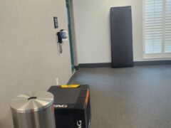 They also have yoga mats, a box for box jumps and exercise as well as medicine balls.
