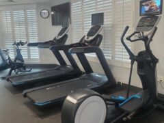 Cardio-wise there’re three treadmills, two cross-trainers and a stationary bike.