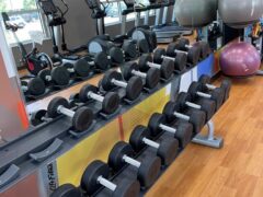 They have dumbbells (up to 50 lbs/22 kgs) and kettlebells and there’s also a cable machine.