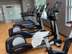 As for cardio equipment, there’re three treadmills, two cross-trainers, a stationary bike and a rowing machine.