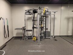 There’s also a cable machine with traditional attachments plus landmine, battle ropes and a TRX setup.
