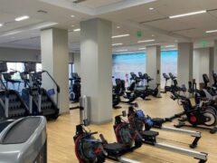 The surprise to me was that the weights went as heavy as they did – often hotel gyms only go up to 50 lbs/22 kgs, but their weight racks went up to 100 lbs/45 kgs. The lighter weights (5 lbs to 30 lbs/2 kgs to 13 kgs) were in constant demand in the morning. There were actually some people using the heavier weights, which was fun. However, it would’ve been more helpful to have more of the lower weights, and maybe go up by 10 lbs/4 kgs on the heavier weights, as they were in less demand.