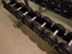 There’s a solid range of dumbbells as well as a pair of adjustable benches.
