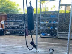 There’s an outdoor jungle gym with a solid range of dumbbells as well as kettlebells, TRX ropes and as punching bags. Outside, they also had a weight sled, a SkiErg, two assault bikes and a rowing machine.