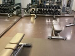 If you’re looking for a weight-based workout, there’re machines for lat pull-downs, chest presses, leg curls and leg extensions as well as shoulder presses. There’s also a cable machine with a nice selection of different handles.