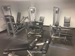 Machine-wise there’s a leg-press, leg extensions/curls, lateral pull-downs, shoulder presses as well as chest presses.