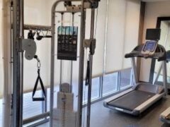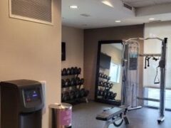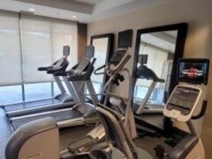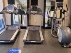 It’s a nice hotel gym with just the right amount of room to do light lifting and cardio to maintain your fitness while away. You have enough room to stretch out and get a good solid workout.