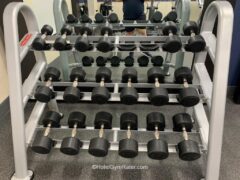 Dumbbells range 9 to 50 lbs/4 to 22 kgs.