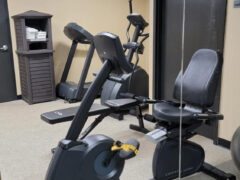 There’s a stationary bike, a cross-trainer and a treadmill.