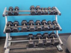 Dumbbells range from 9 to 50 lbs/4 to 22 kgs and there’re two adjustable benches allowing you to do a greater variety of exercises.