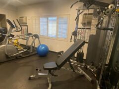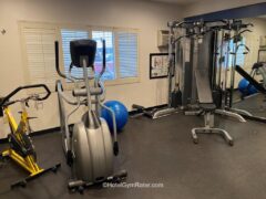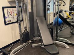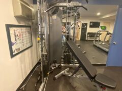 This is a great hotel gym! It’s well-equipped with a fantastic cable machine with all kinds of accessories and attachments.