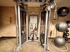 In terms of cardio equipment, there’s a stationary bike, two cross-trainers and three treadmills.
