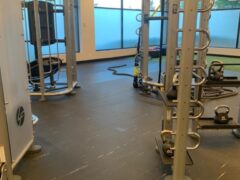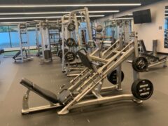There’s a Smith machine and other weight-based machines – for example, two different machines for leg presses, a lat pull-down machine, a machine for seated rows and a chest press machine.