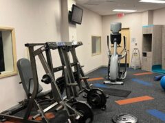 In terms of cardio equipment, there’re two cross-trainers and three treadmills.