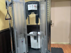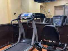 There’s a treadmill, a stationary bike and a cable machine – that’s it.