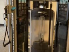 There’s a fair selection of dumbbells and kettlebells as well as a pair of adjustable benches. There’s also a cable machine and a leg press machine.