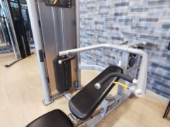 There’s also a cable machine with a nice selection of handles and a shoulder/chest press machine.